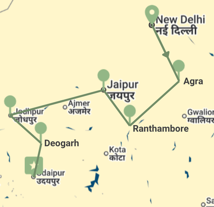 Delhi | Agra | Ranthambore | Jaipur | Jodhpur | Deogarh | Udaipur